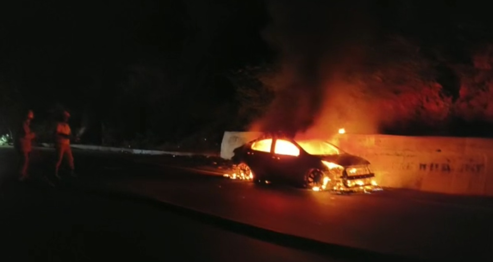 அடுத்த சில நிமிடங்களில் காரின் என்ஜின் பகுதி முழுவதும் தீப்பிடிக்க ஆரம்பித்தது. தகவல் அறிந்து வந்த தீயணைப்புத்துறையினர் நீண்ட நேரம் போராடி தீயை அணைத்தனர். ஆனாலும் மலைப்பாதையில் தீயணைப்பு வாகனம் வந்து சேர்வதற்குள் கார் தீயில் எரிந்து நாசமானது.