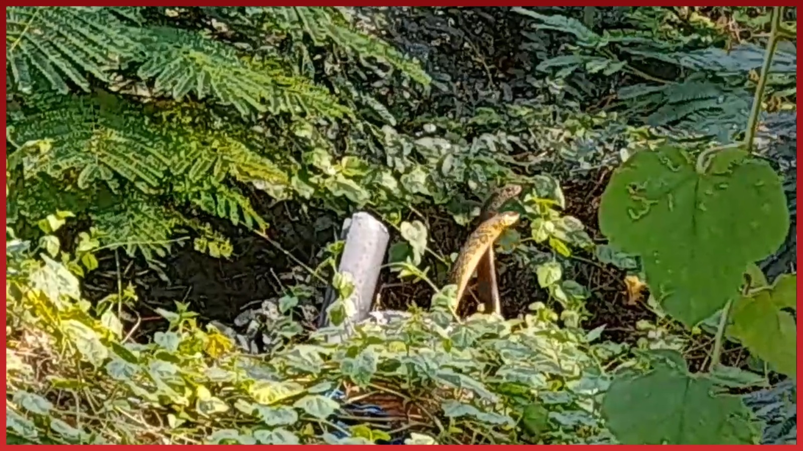 இந்நிலையில் அப்பகுதியின் சாலையோரத்தில் உள்ள முட்புதர் அருகில் சுமார் 10 அடி நீளமுள்ள மஞ்சள் மற்றும் கருப்பு சாரை பாம்புகள் ஒன்றோடு ஒன்று பின்னிப்பிணைந்து நடமானடின.