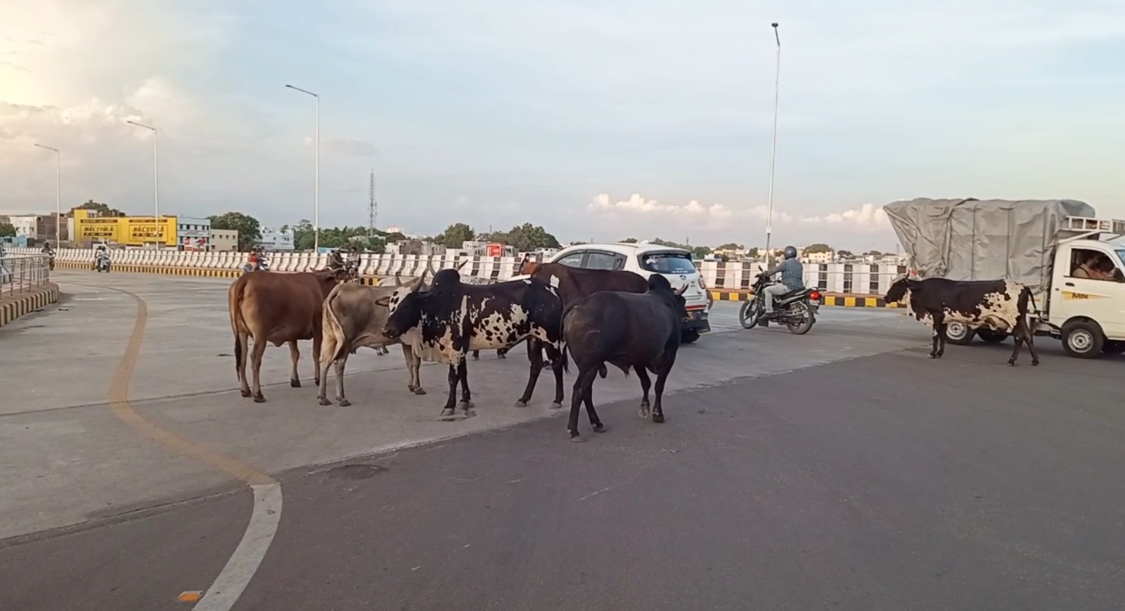 மதுரையில் புதியதாக திறந்து வைக்கப்பட்ட பாலத்தில் வாகன ஓட்டிகளுக்கு இடையூறு தரும் வகையில் மாடுகள் சுற்றித்திரிவதால் விபத்து ஏற்படும் அபாயம் இருப்பதாக பொதுமக்கள் குற்றம்சாட்டி உள்ளனர்.