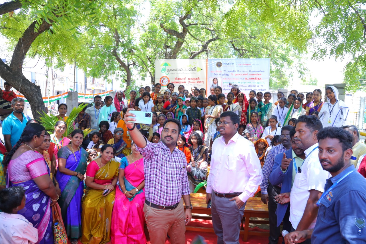 மேலும் தாயில்பட்டி, மடத்துப்பட்டி, நதிக்குடி பகுதிகளில் உள்ள அரசுப்பள்ளி மாணவிகள் 75 பேர், சுதந்திரப் போராட்டத்தில் ஈடுபட்ட 75 தலைவர்களின் வேடங்கள் அணிந்து வந்து சுதந்திர தின வாழ்த்துகளை தெரிவித்தனர். இதனை பார்த்த பொதுமக்கள் அனைவரும் கைதட்டி மகிழ்ச்சி தெரிவித்து பள்ளி மாணவிகளுக்கு வாழ்த்து தெரிவித்தனர். நிகழ்ச்சிகளை சிவகாசி முகநூல் நண்பர்கள் குழுவைச் சேர்ந்தவர்கள் ஒருங்கிணைத்தனர். நிகழ்ச்சியில் சிவகாசி எம்எல்ஏ அசோகன், மாநகராட்சி மண்டல தலைவர்கள் சூரியா, சேவுகன், மாமன்ற உறுப்பினர் ராஜேஷ், தாசில்தார் லோகநாதன், வருவாய் ஆய்வாளர் விக்னேஷ்வரன் உட்பட பலர் கலந்து கொண்டனர். ஆசிரியை ஜெயமேரி நன்றி கூறினார்.