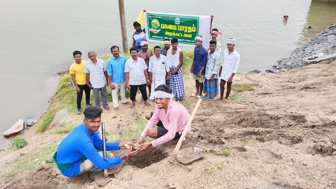 விருதுநகர் மாவட்டம், காரியாபட்டி பகுதியில் சுற்றுப்புறச்சூழல் பாதுகாப்பு விழிப்புணர்வு மற்றும் மரக்கன்றுகள் நடும் பணிகளை செய்துவரும் பசுமை பாரதம் அறக்கட்டளை சார்பாக கிராமங்கள் தோறும் பனைவிதைகள் நடும் பணி துவங்கப்பட்டது.